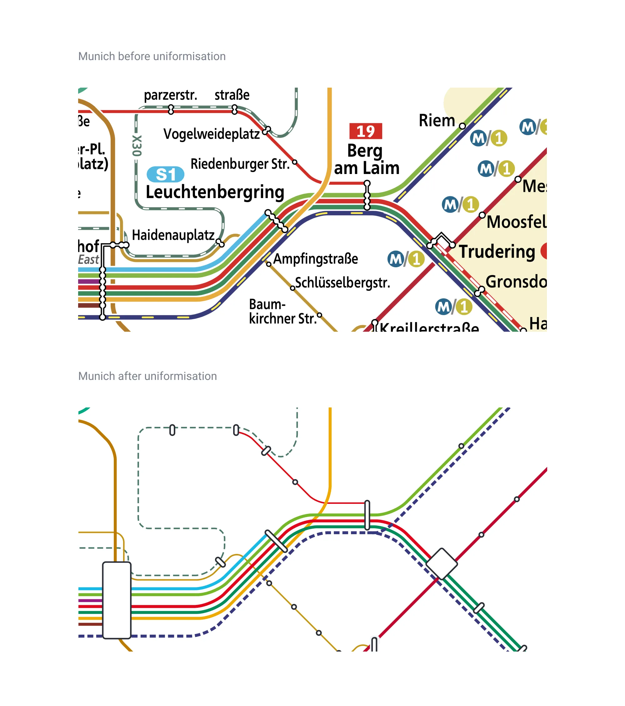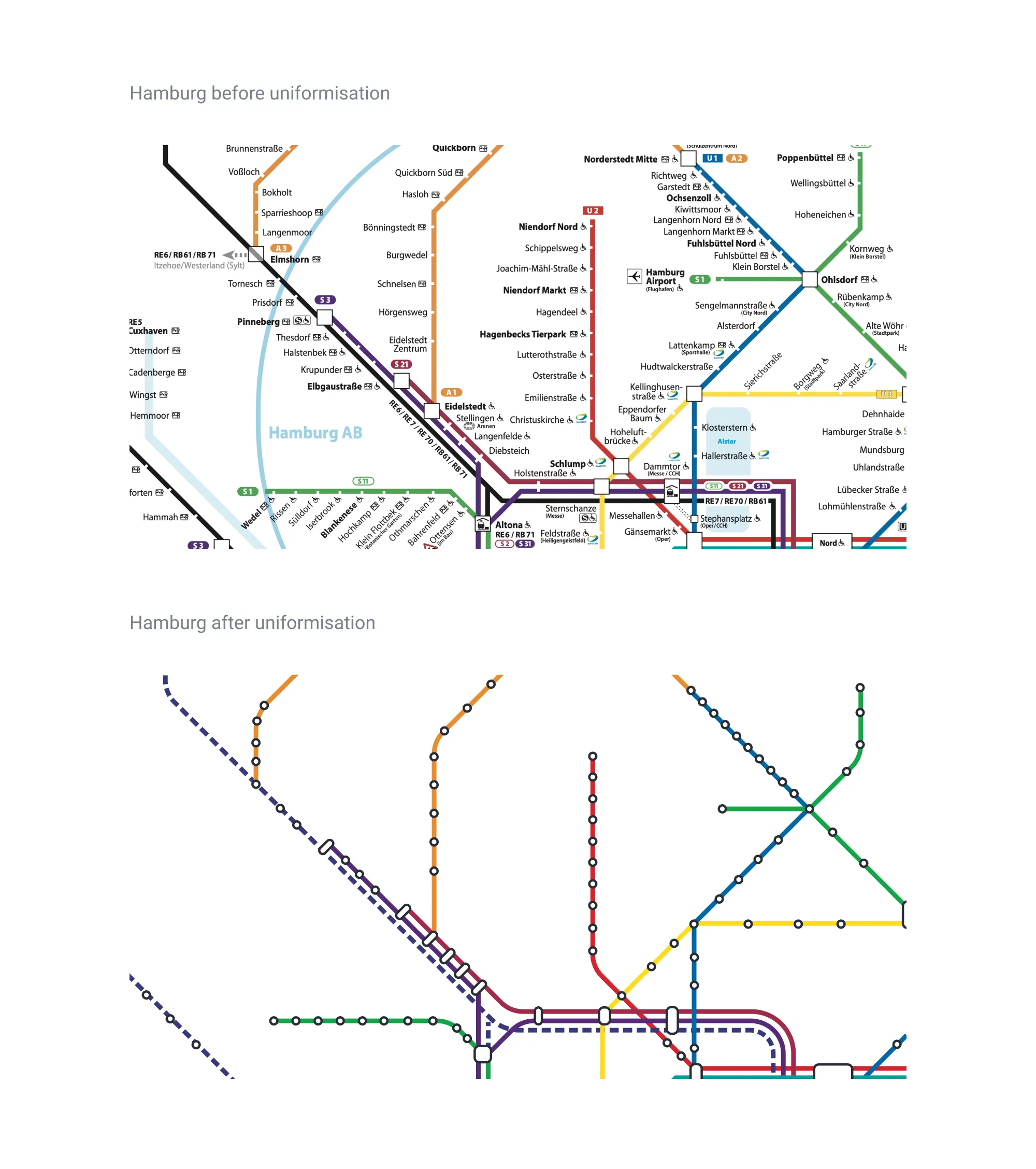 Each major German city has its own local transportation network, each with unique map designs and layout guidelines. Until now, there had been no initiative to graphically or technically standardize this information.