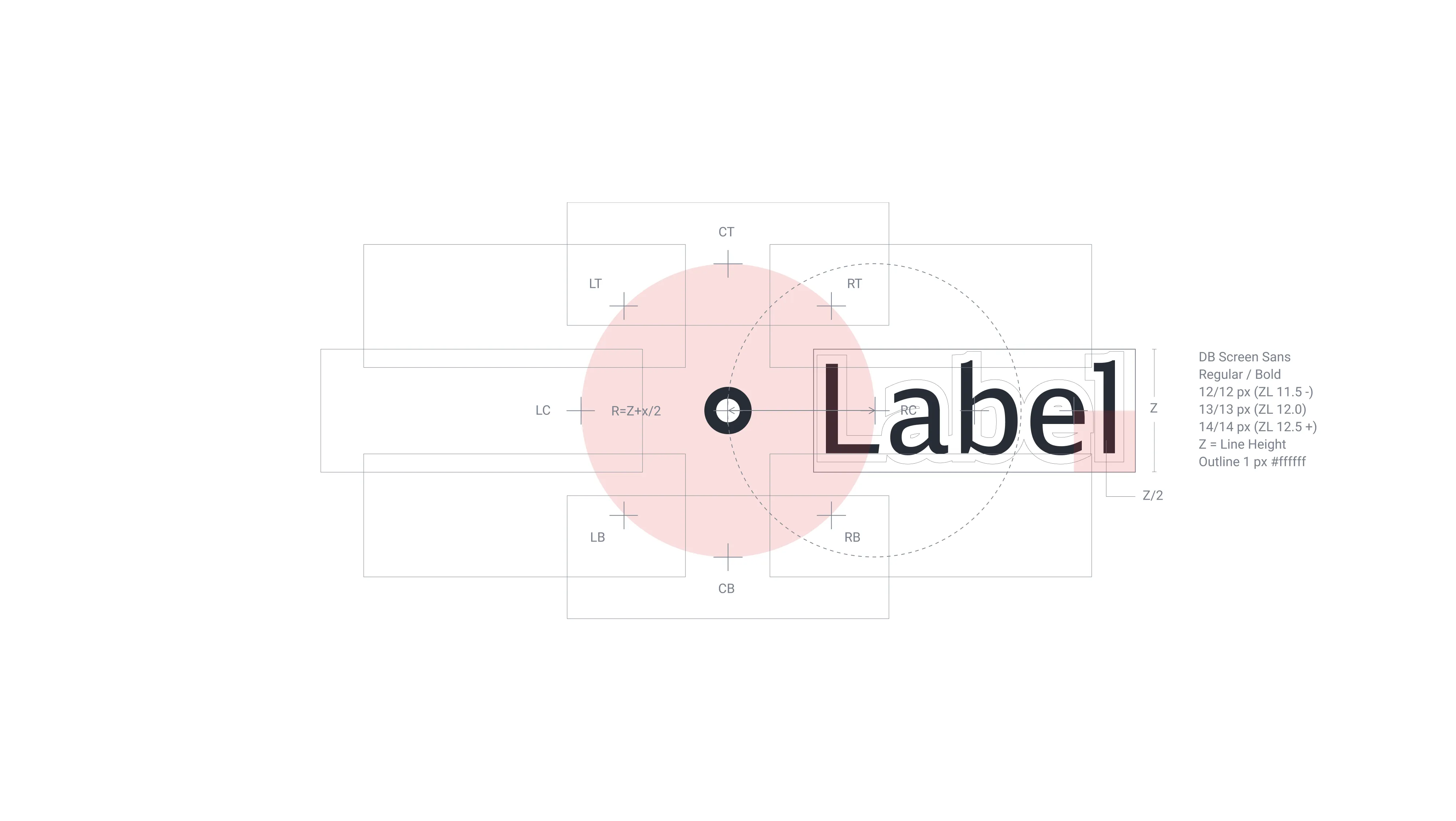Label position … Deutsche Bahn assigned me to develop a unified concept for integrating these maps into their existing design system, taking into account the diversity, unique characteristics of each map and technical specifications.