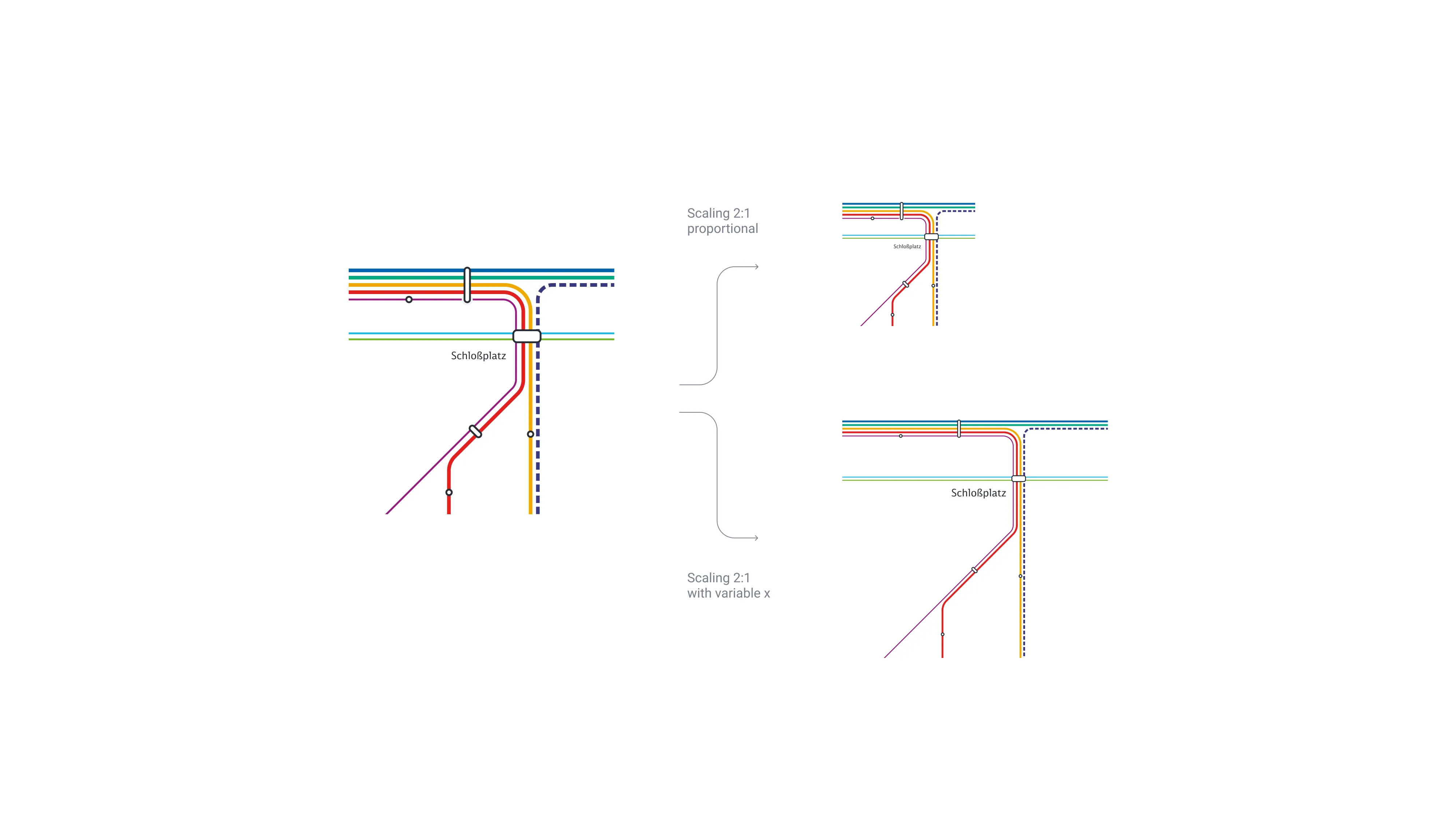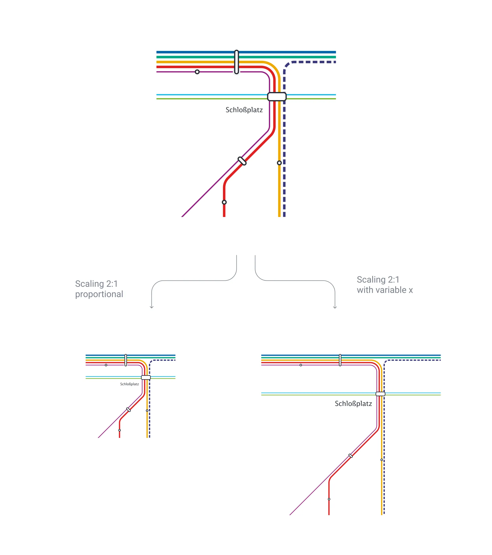 Scaling system …Deutsche Bahn assigned me to develop a unified concept for integrating these maps into their existing design system, taking into account the diversity, unique characteristics of each map and technical specifications.