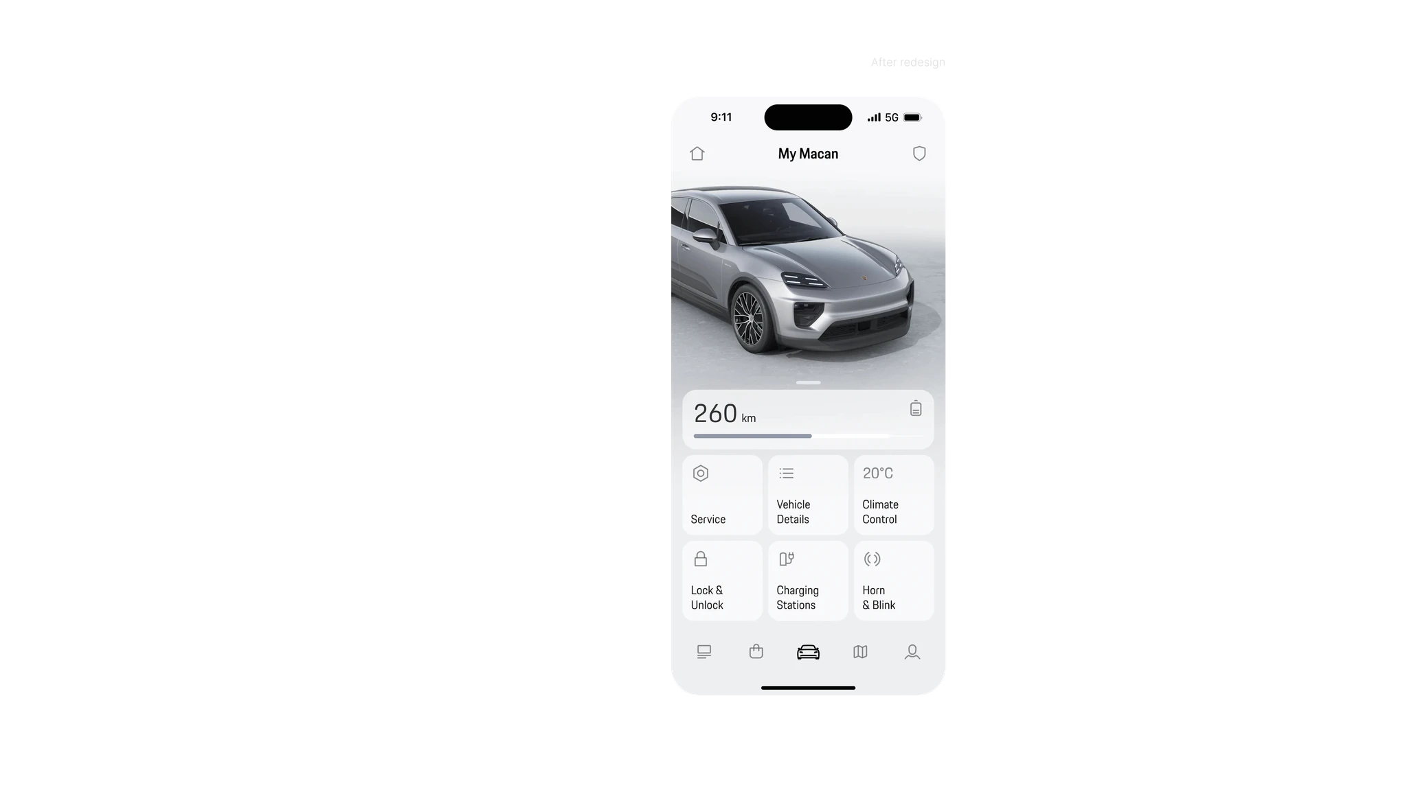 One of the core challenges of the Porsche app homepage is managing and prioritizing a wide range of features and services across different vehicle models.