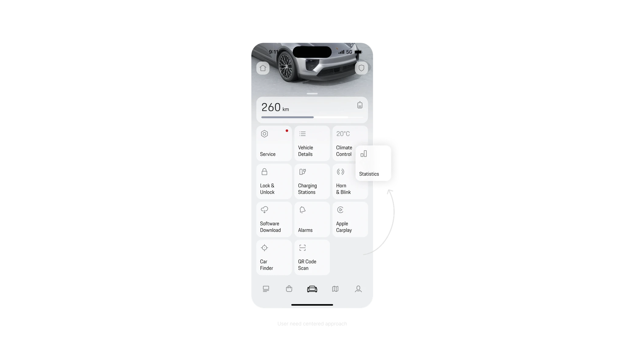 A redesign of the main page was essential to elevate the user experience and to enable the integration of advanced features such as climate control, intelligent remote controls, service reminders, car finder, driving statistics, and charging management. This ensured seamless connectivity and greater convenience for users.
